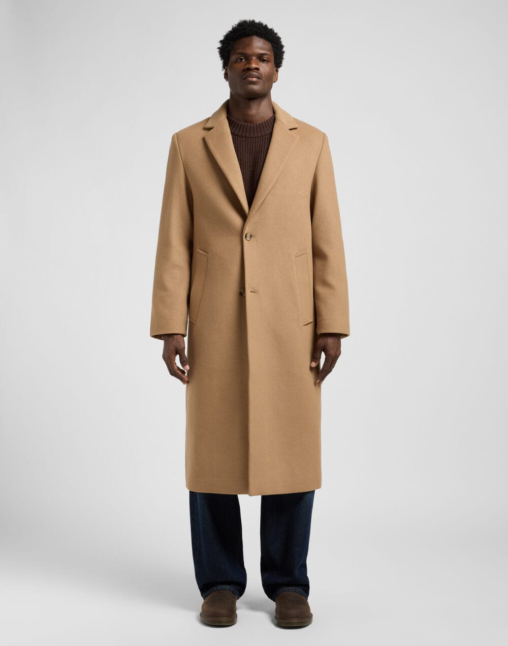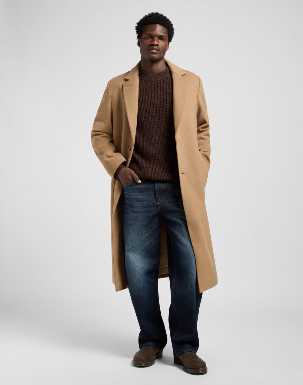 • מעיל צמר באורך מלא עם מפתח צוואר מחודד וכפתרה חד-שורתית – פריט על-זמני שמשדר אלגנטיות ומעלה כל לוק לרמה הבאה.