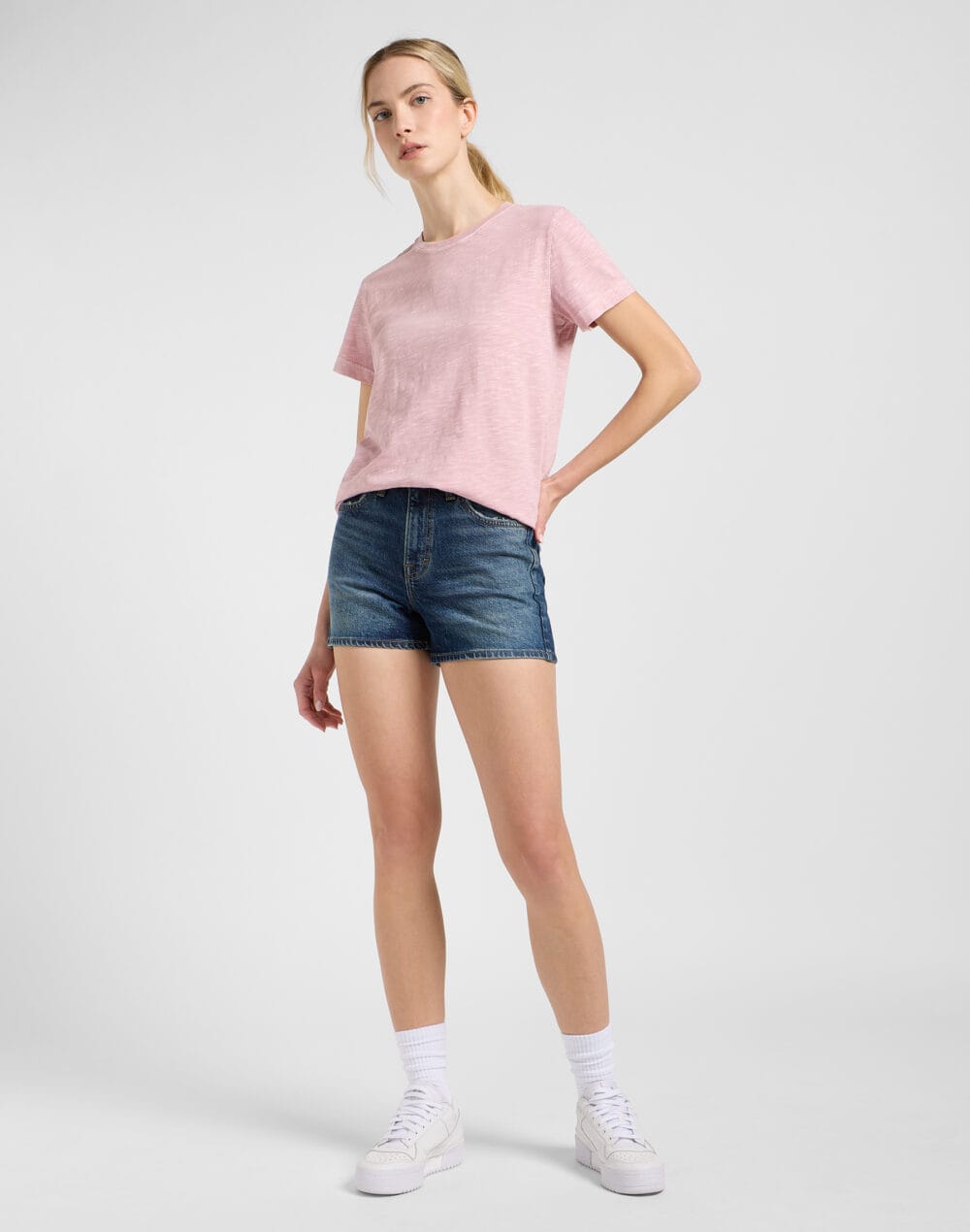 - תכירו את הטי המושלם! גזרה ישרה, שרוולים קצרים, צווארון עגול ונוחות שאין לה תחרות – אפשר ללבוש את החולצה הזו לבד או מתחת לחולצה או ג'קט דנים.בד ג'רזי רך במיוחד מ-100% כותנה, שלא תרצו להוריד אותה.