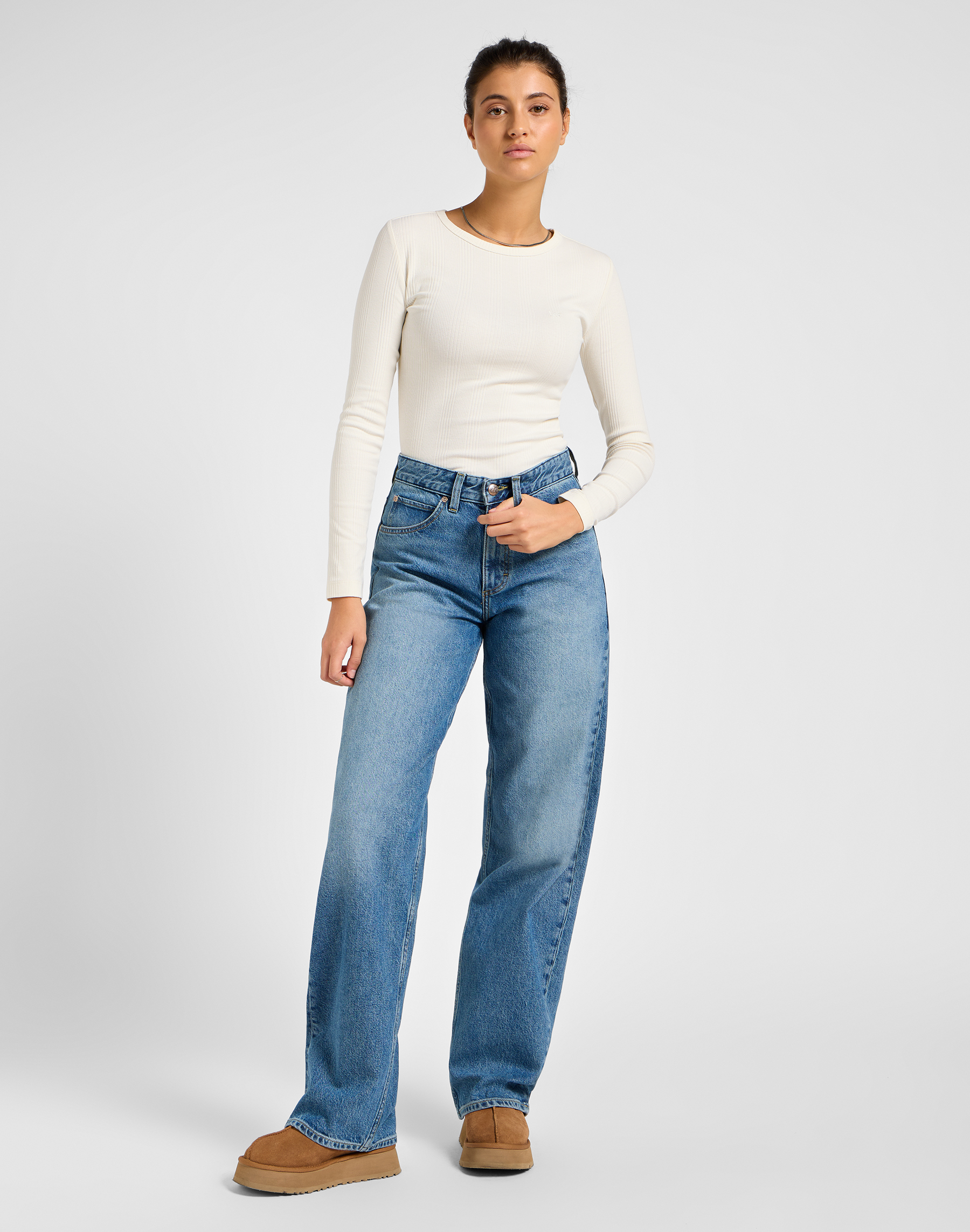 - ג'ינס Rider Loose מציע גזרה רחבה ונינוחה עם מראה עכשווי וקווים נקיים – יושב על המותן ויורד בקו רחב מהירך ועד הקרסול. שילוב מושלם בין נוחות מודרנית למראה מחמיא בעל אופי רטרו.