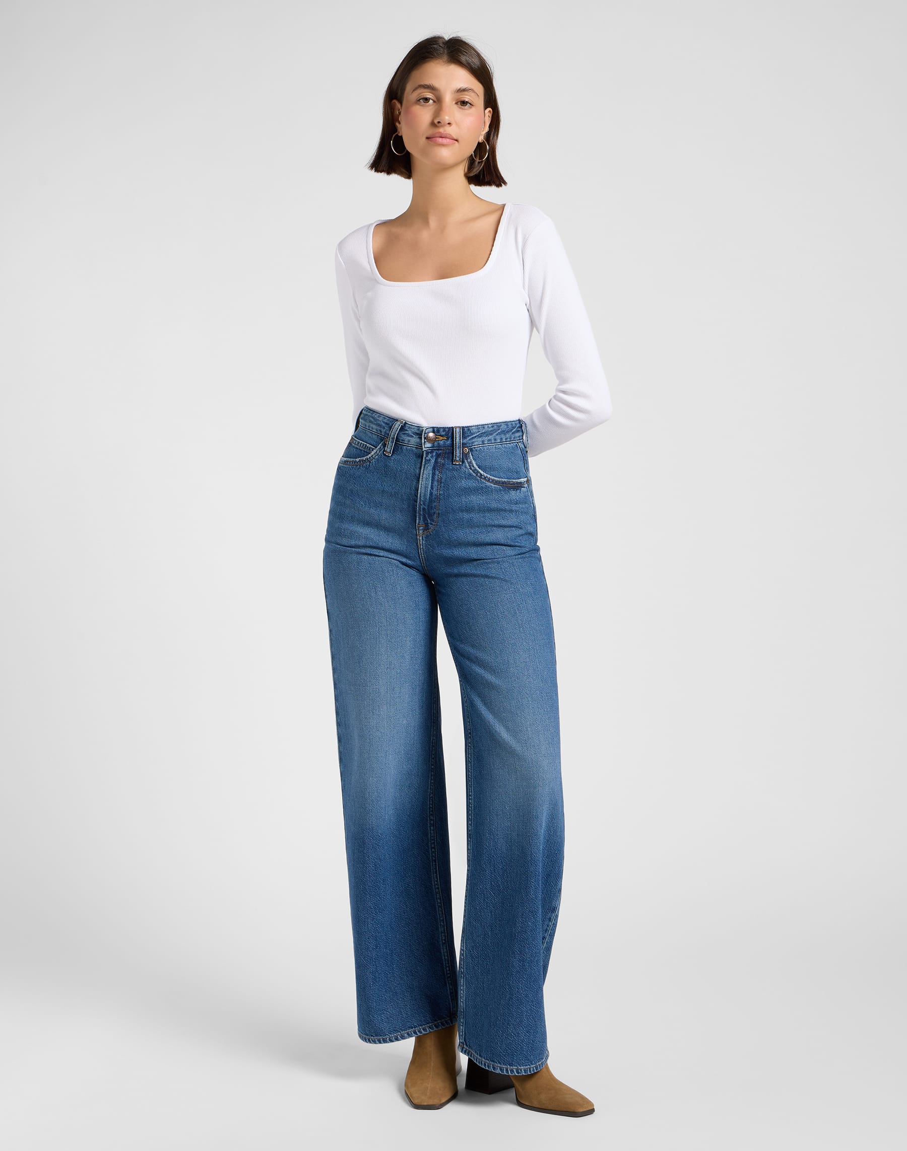 ג'ינס Stella בגזרה רחבה בסגנון פלאצו עם רגל A-line – מראה רטרו מודרני שמחמיא במיוחד. המותן הגבוהה מאוד מתאימה במיוחד לשילוב עם חולצה בתוך המכנס או טי קצרה.
